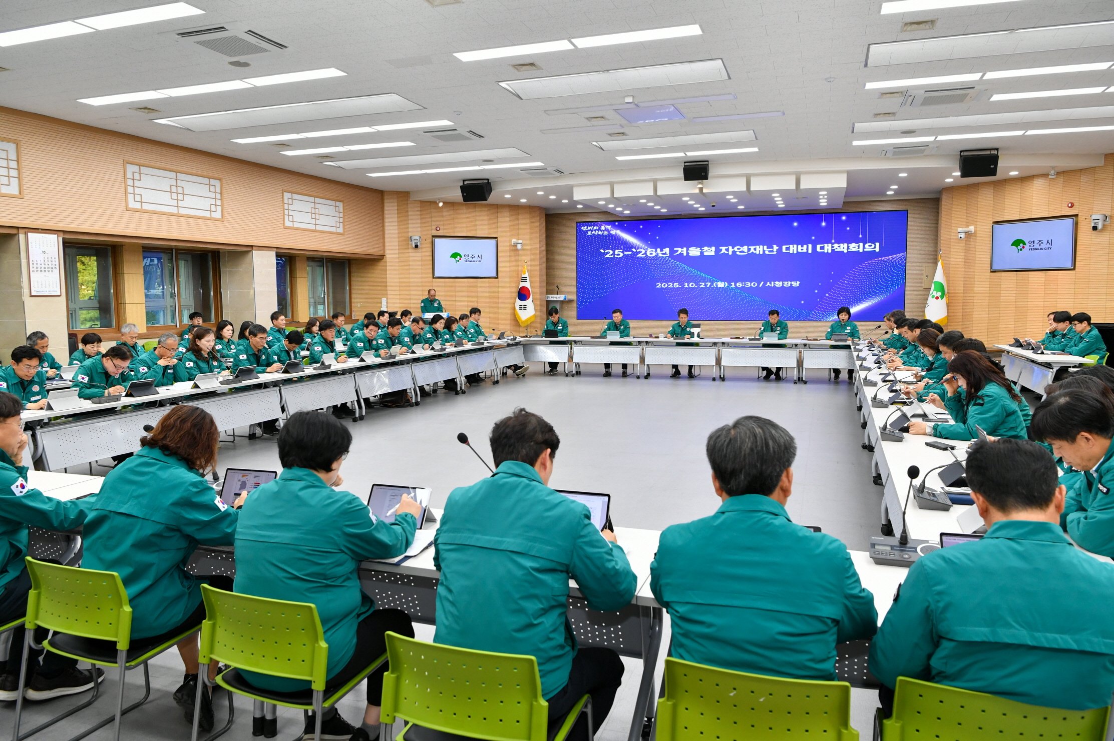 유정근 영주시장 권한대행을 비롯해 간부 공무원 70여명이 참석한 이날 회의에는 다가오는 겨울철 폭설·한파 등 이상기후로 인한 재난에 선제적으로 대응하기 위한 종합대책과 부서별 협업 대책 및 현장 대응체계를 논의했다.