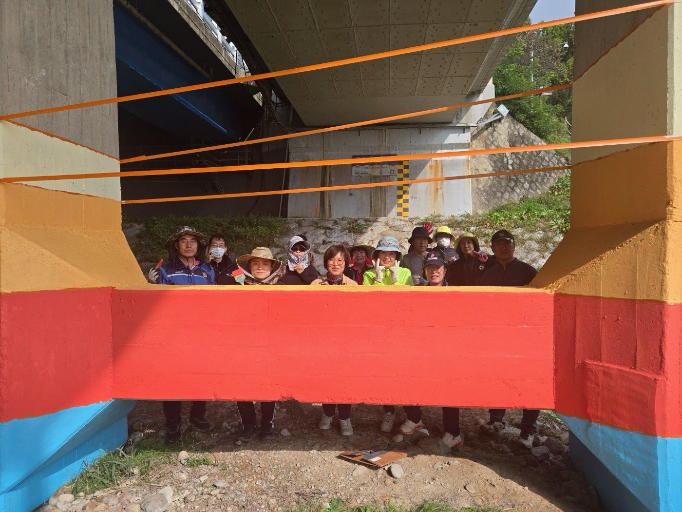 이번 벽화봉사는 오학동 주민자치회 위원들과 주민들의 자발적인 참여로 진행됐으며, 회색빛 콘크리트로 삭막했던 교량 하부가 다채로운 색채와 따뜻한 메시지로 채워졌다.