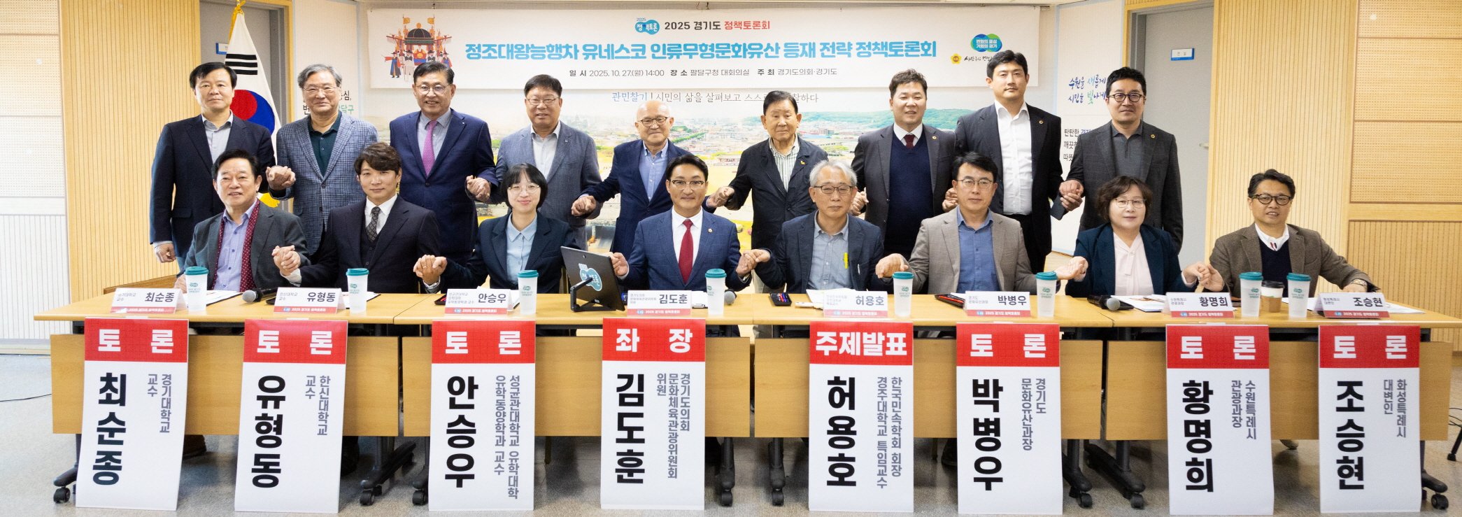 [금요저널] 경기도의회 문화체육관광위원회 김도훈 의원(국민의힘)이 좌장을 맡은 ‘정조대왕능행차 유네스코 인류무형문화유산 등재 전략 정책토론회’가 10월 27일(월) 팔달구청 대회의실에서 성황리에 개최됐다.