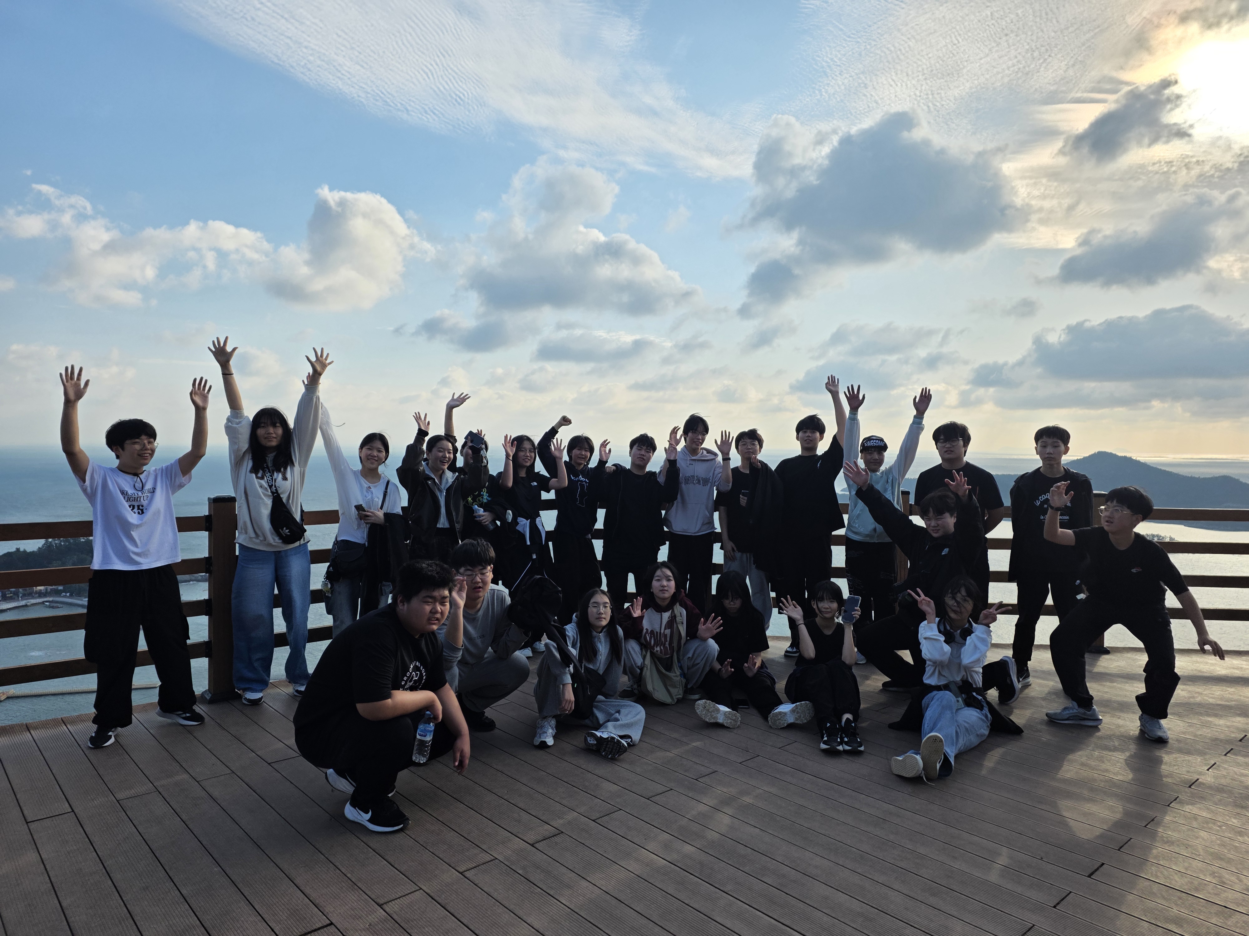 첫째 날, 학생들은 새만금방조제와 선유도 명품둘레길, 대장봉 트레킹 등 자연 속 체험을 통해 신체적 도전과 성취감을 경험하였다. 특히, 대장봉 등반은 사전에 진행된 반별 5,000보 걷기 챌린지를 통해 체력과 협동심을 준비한 결과, 학생들이 등반 후 뿌듯함과 자신감을 크게 느꼈다.