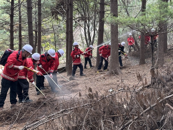 훈련에서는 산불 발생 시 초기 대응과 진화 기본요령, 장비 운용법 등을 숙지하는 한편 대형·초고속 산불에 대비한 방어선 구축과 주민 대피 요령 등을 중점적으로 다뤘다.