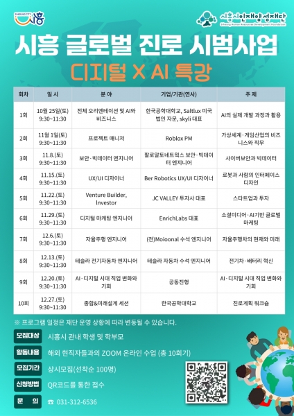 [금요저널] 시흥시인재양성재단은 지난 10월 26일부터 관내 학생 및 학부모를 대상으로 ‘시흥 글로벌 진로 시범사업’ 운영을 시작했다.