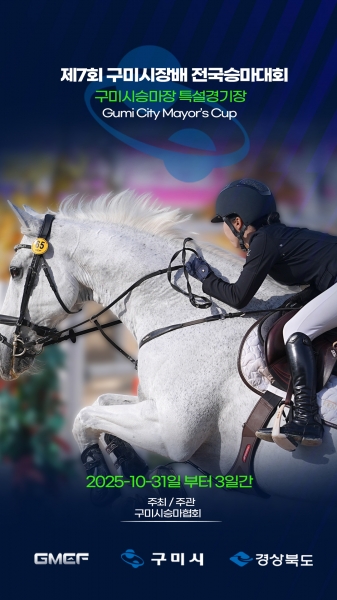[금요저널] 구미시는 10월 31일부터 11월 3일까지 4일간 옥성면 구미시승마장에서 ‘제7회 구미시장배 전국승마대회’ 와 ‘제60회 회장배 전국승마대회’를 개최한다.