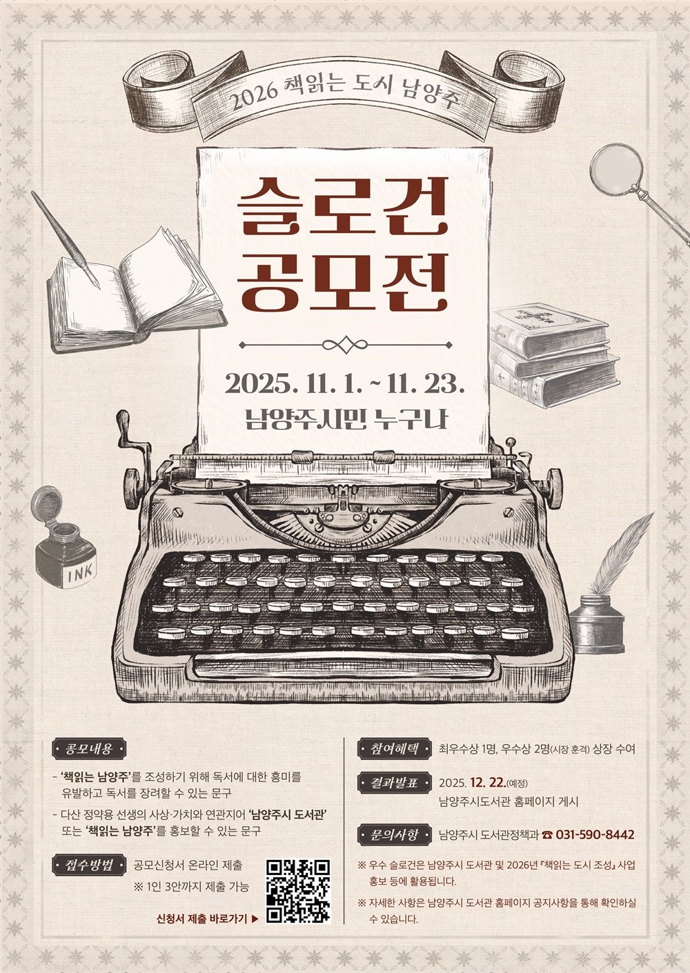 [금요저널] 남양주시(시장 주광덕)는 11월 1일부터 23일까지 ‘2026 책읽는 도시 남양주 슬로건 공모전’을 개최한다고 밝혔다.