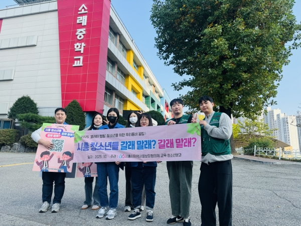 이번 캠페인은 지난 21일 남부권 정왕중학교에 이어 29일 북부권 소래중학교에서 진행됐으며 약 1,000명의 청소년을 대상으로 카드뉴스에 접속할 수 있는 큐알 열쇠고리를 배부하고 관련 정보를 안내했다.
