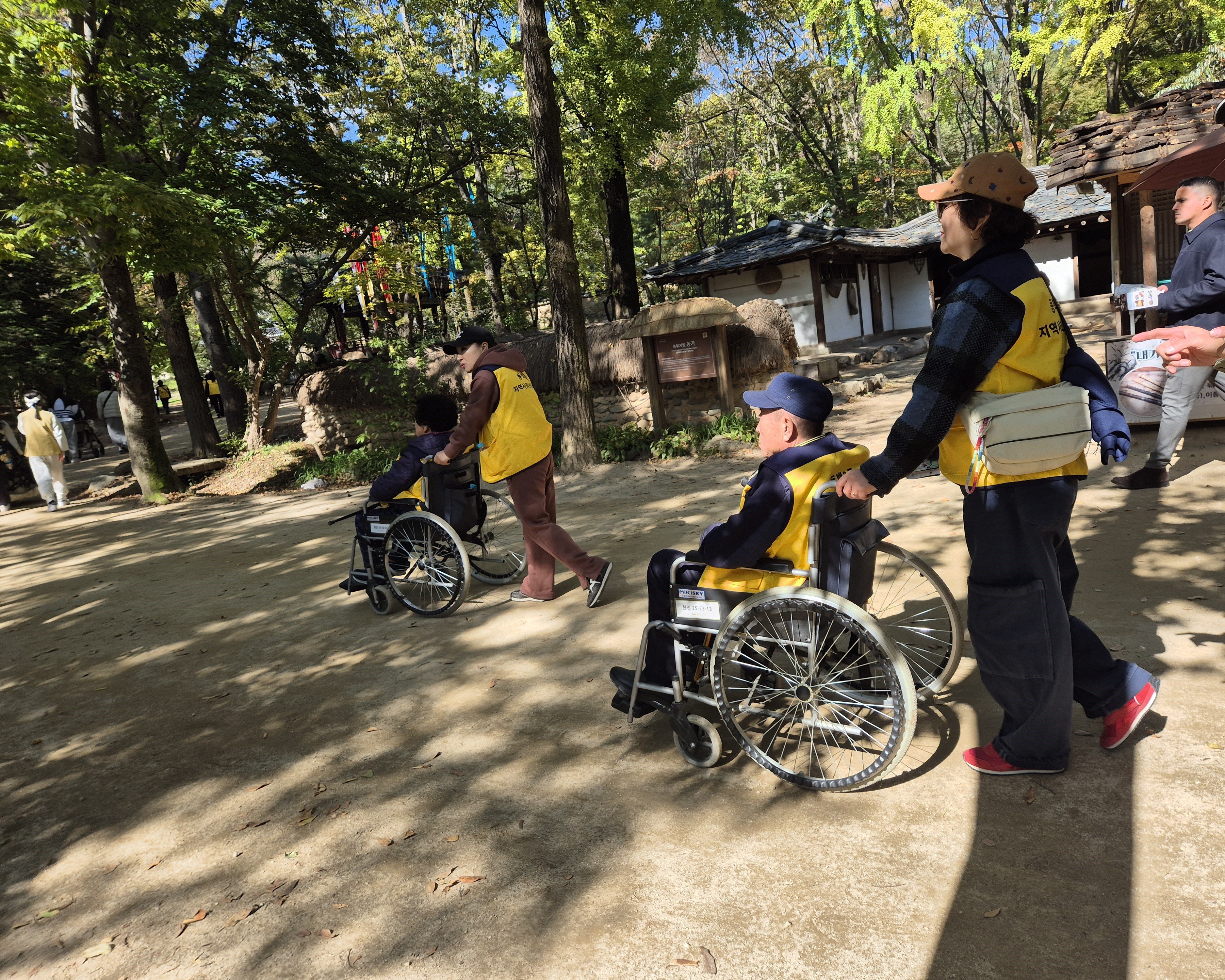 이 사업은 동백3동 지역사회보장협의체가 ‘2025년도 주민주도 마을복지지원 공모 사업’에 선정돼 ‘나들이 지원 사업’일환으로 홀몸 어르신 10명을 모시고 한국민속촌 나들이를 했다.