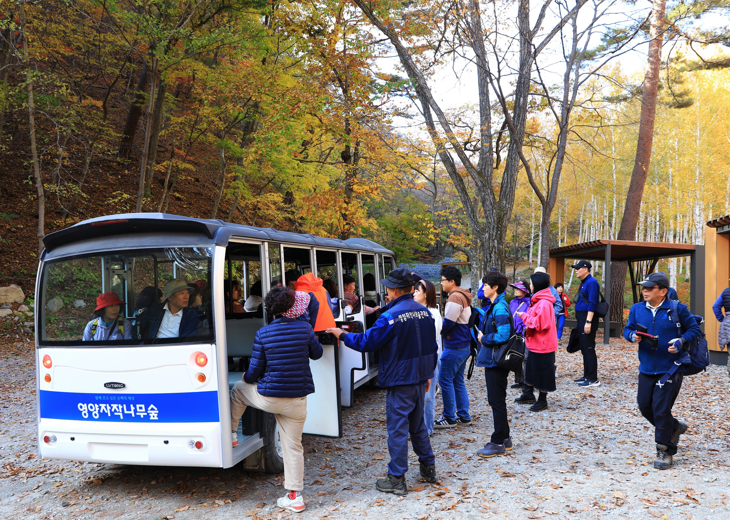 빼곡하게 수놓인 나무의 하얀 수피들 사이로 알록달록 피어오른 단풍은 늘상 봐오던 단풍나무들과는 색다른 감동을 선사한다.