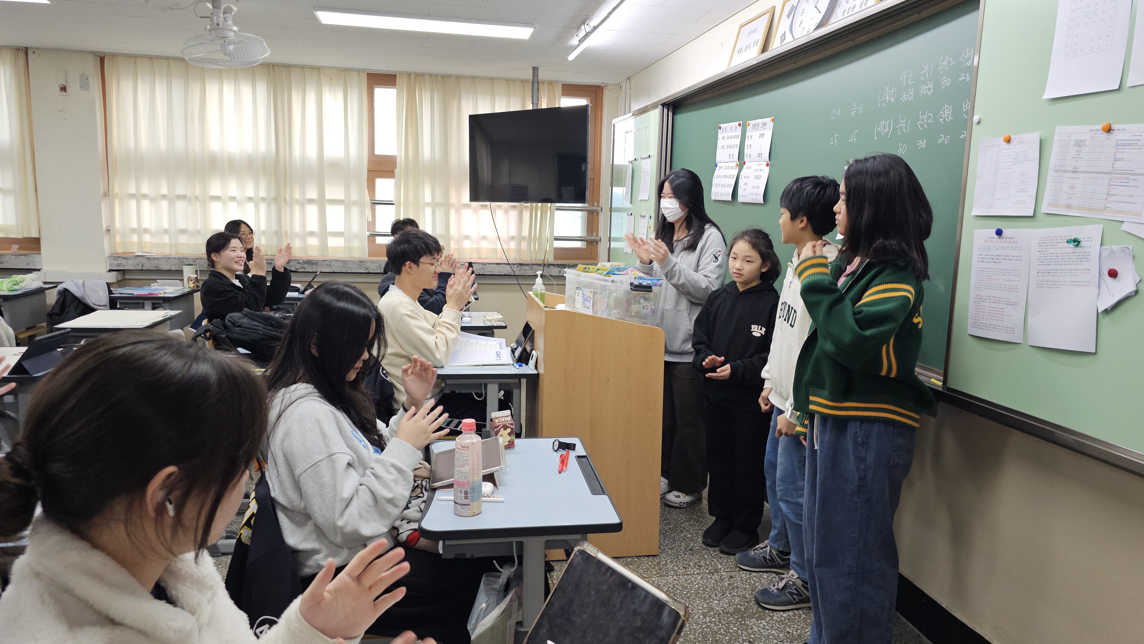 이날 청소년들은 현재 지도자로 활동 중인 수학동아리 학생들과 함께 3학년 교실을 방문했다.