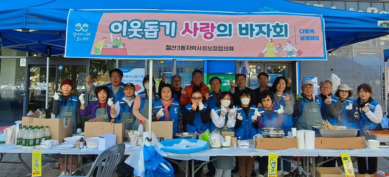 [금요저널] 광명시 철산3동 지역사회보장협의체는 지난 1일 NH농협 광명시지부 앞마당에서 ‘이웃돕기 사랑의 바자회’를 열었다.