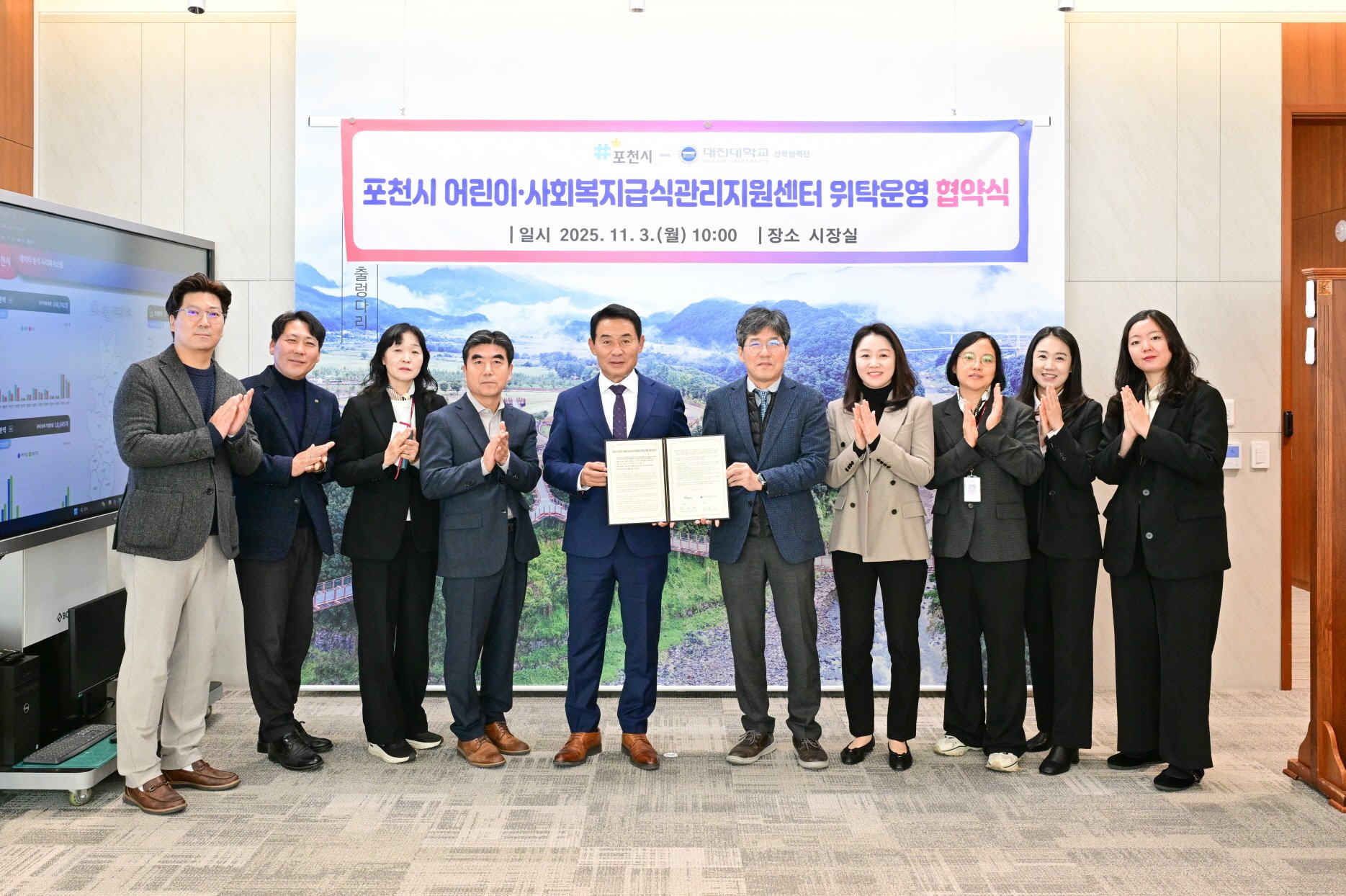 [금요저널] 포천시(시장 백영현)는 지난 3일 대진대학교 산학협력단과 ‘포천시 어린이·사회복지급식관리지원센터 위탁운영 협약식’을 개최했다.