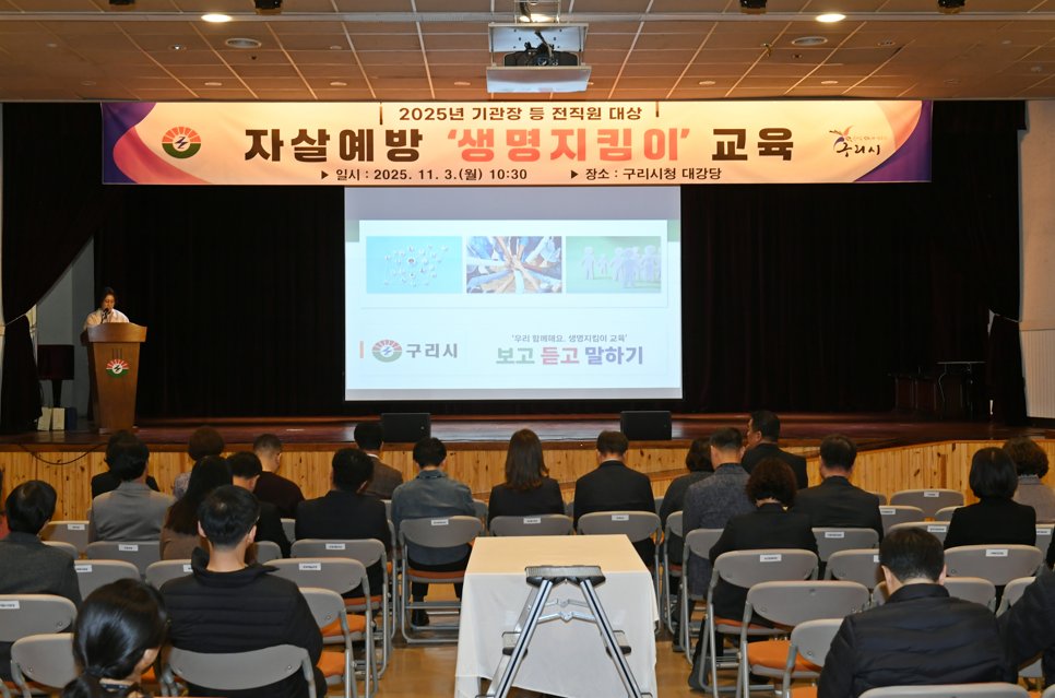 [금요저널] 구리시는 지난 11월 3일 구리시청 대강당에서 시장과 5급 이상 간부 공무원을 비롯한 전 직원을 대상으로‘2025년 자살 예방 ‘생명지킴이’교육’을 실시했다.