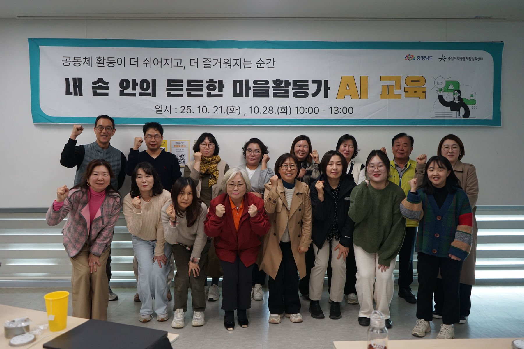[금요저널] 충남지역공동체활성화센터는 10월 28일 충남 청양군 청양읍 ‘혁신플랫폼 와유’세미나실에서 ‘2025년 비영리민간단체 기초 및 실무교육 – 비영리 베이스캠프’의 두 번째 과정인 ‘내 손안의 든든한 마을활동가 AI교육’ 2회기를 성공적으로 마쳤다고 밝혔다.