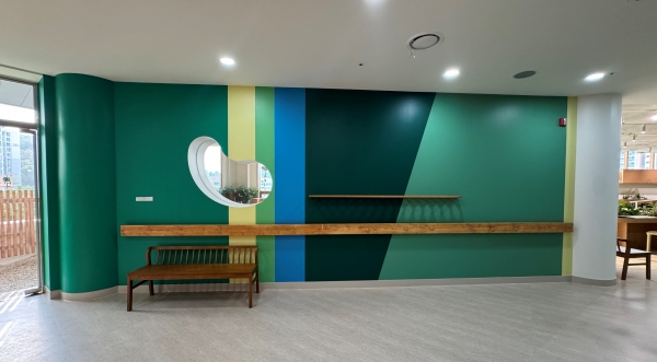 특히 다양한 자연의 색을 인공 색채로 재해석해 벽면에 구현하고 나무와 풀잎 등 자연의 요소를 조화롭게 배치해 어르신들의 감각을 일깨우는 효과를 높였다.