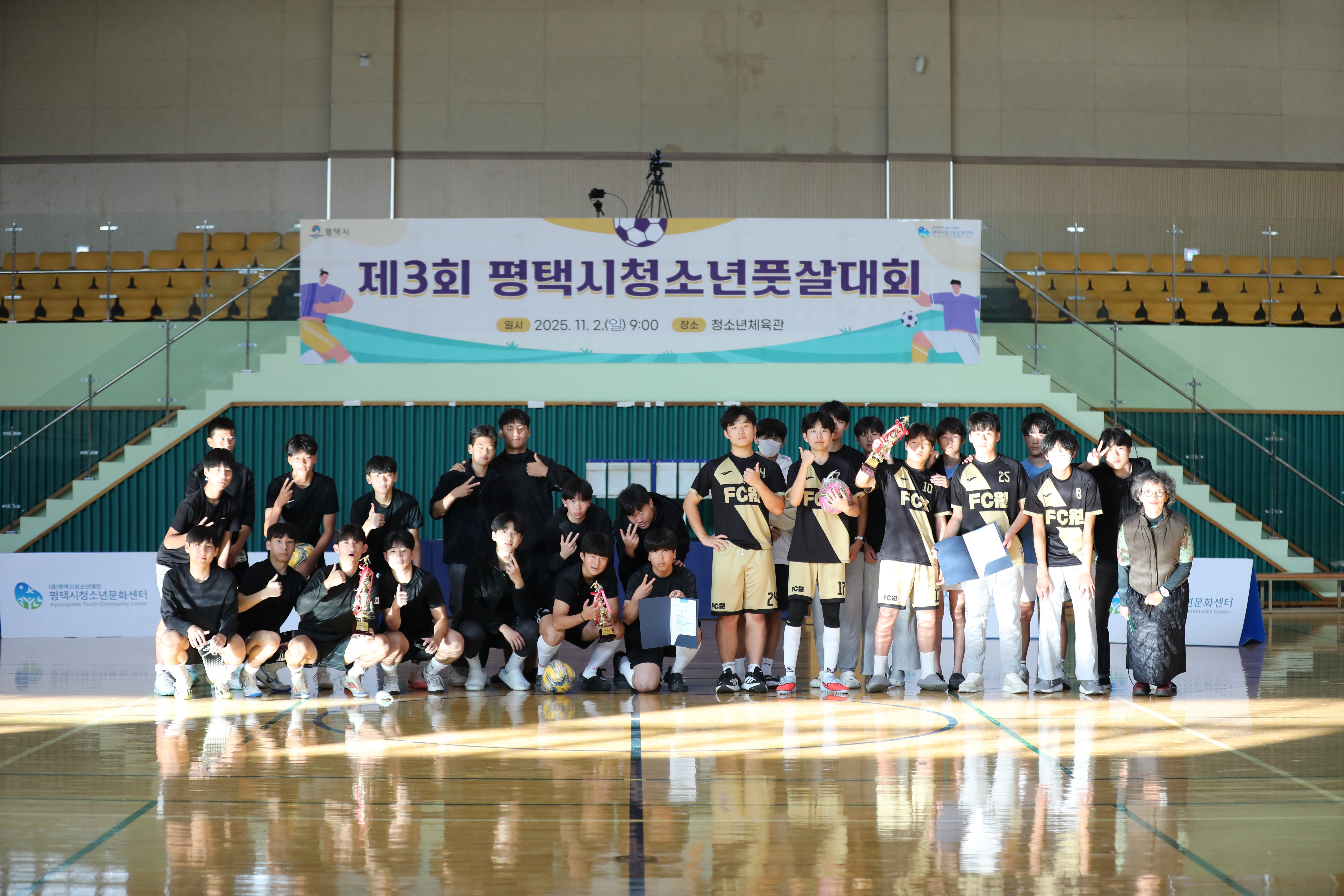 [금요저널] 평택시 중학생들의 열정과 팀워크로 빛난 건강한 스포츠 한마당 평택시청소년재단 평택시청소년문화센터가 주최하고 청소년풋살동아리 ‘FC원’이 주관한 '제3회 평택시청소년풋살대회'가 지난 2일 성황리에 마무리됐다.
