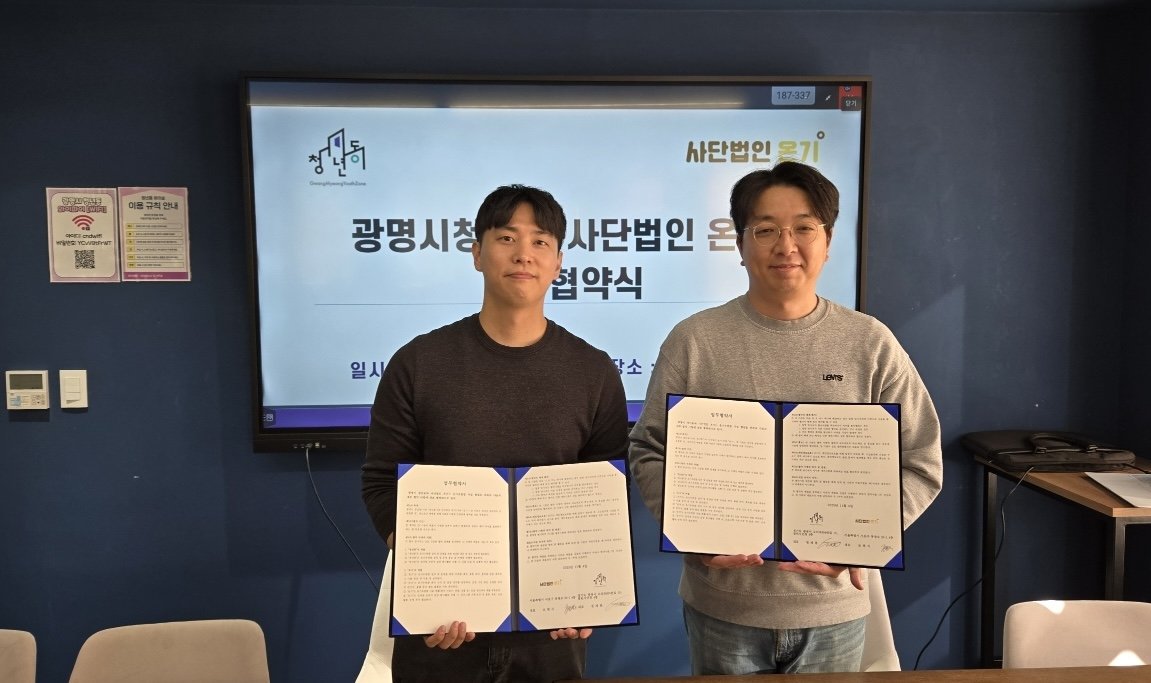 광명시청년동과 사단법인 온기는 지난 4일 청년동에서 청년 정서지원 협력체계 구축을 위한 업무협약을 체결했다.
