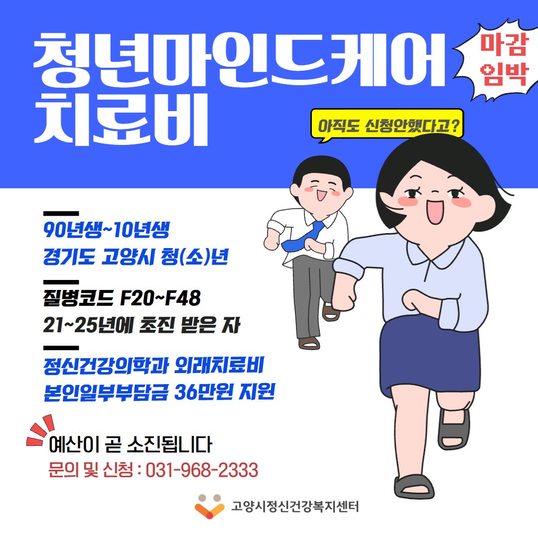 고양시 청소년 정신건강치료비 청년마인드케어 운영