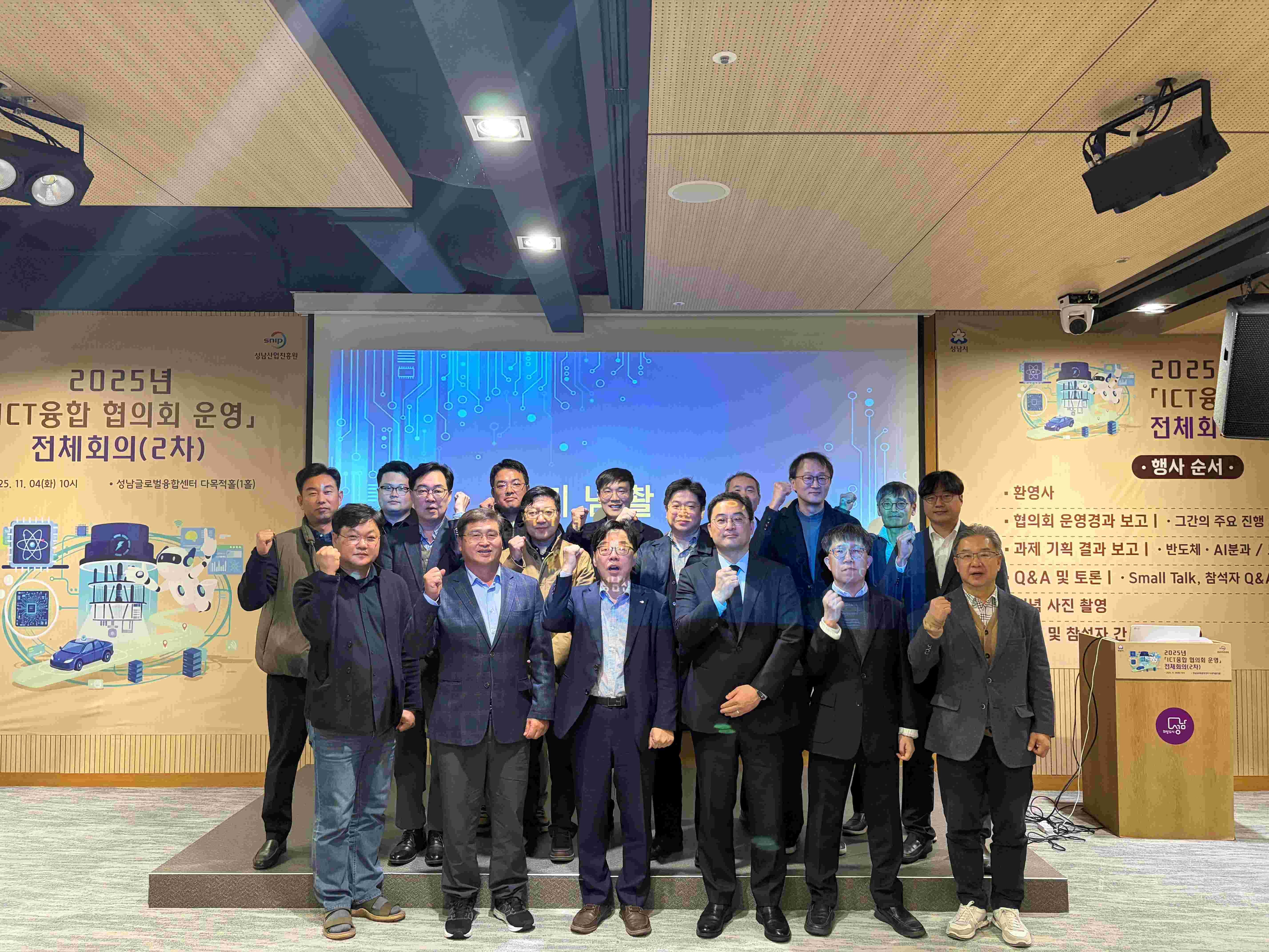 [금요저널] 성남산업진흥원은 11월 4일 오전 10시, 성남글로벌융합센터 다목적홀에서 2025년 ‘ICT융합협의회’제2차 전체회의를 열고 성남시 ICT 산업의 미래 성장 전략과 협력 방향을 논의했다.