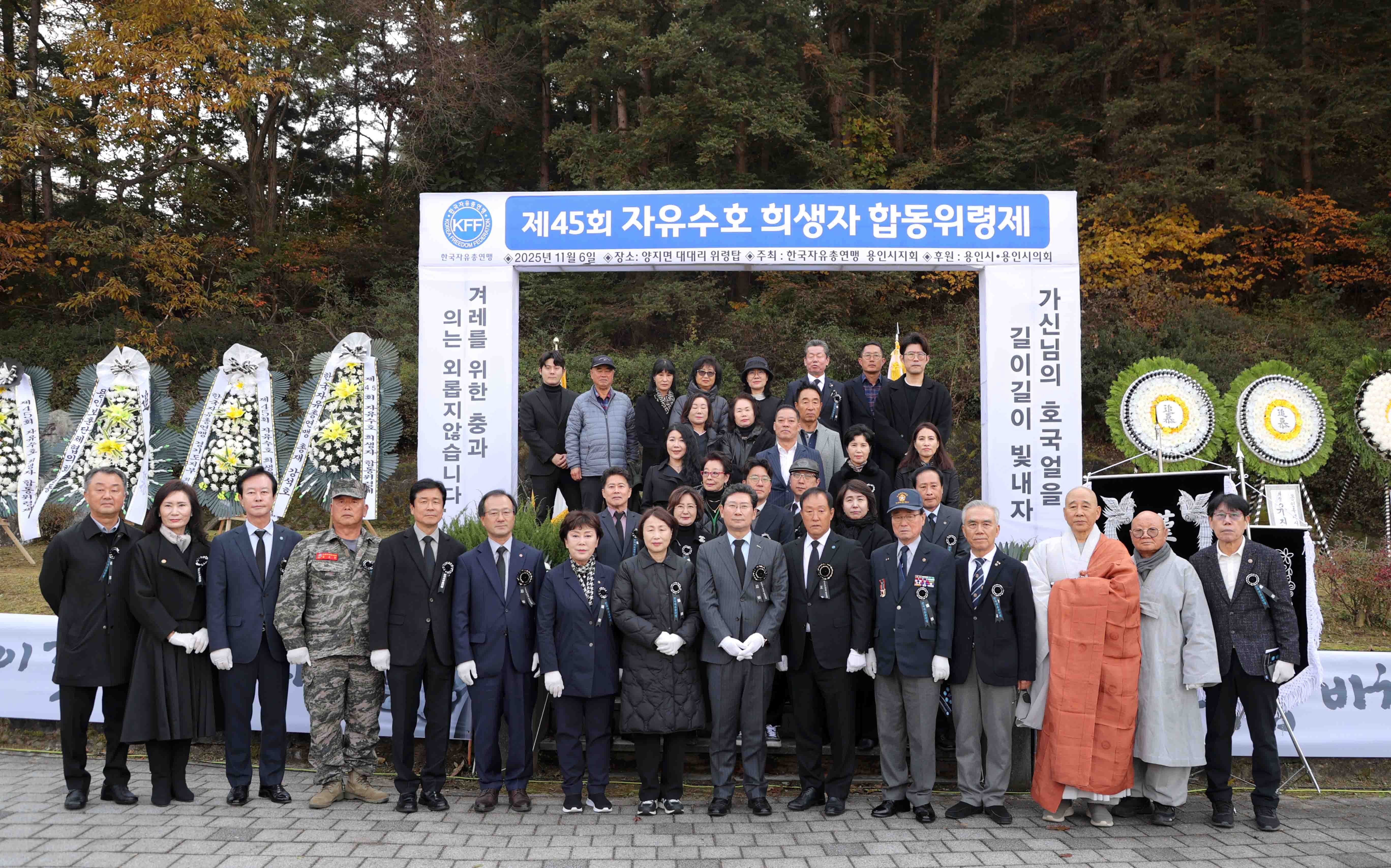 [금요저널] 이상일 용인특례시장은 6일 처인구 양지면 대대리 ‘자유수호희생자위령탑’에서 열린 제45회 자유수호희생자 합동위령제에 참석해 희생자들을 추모했다.