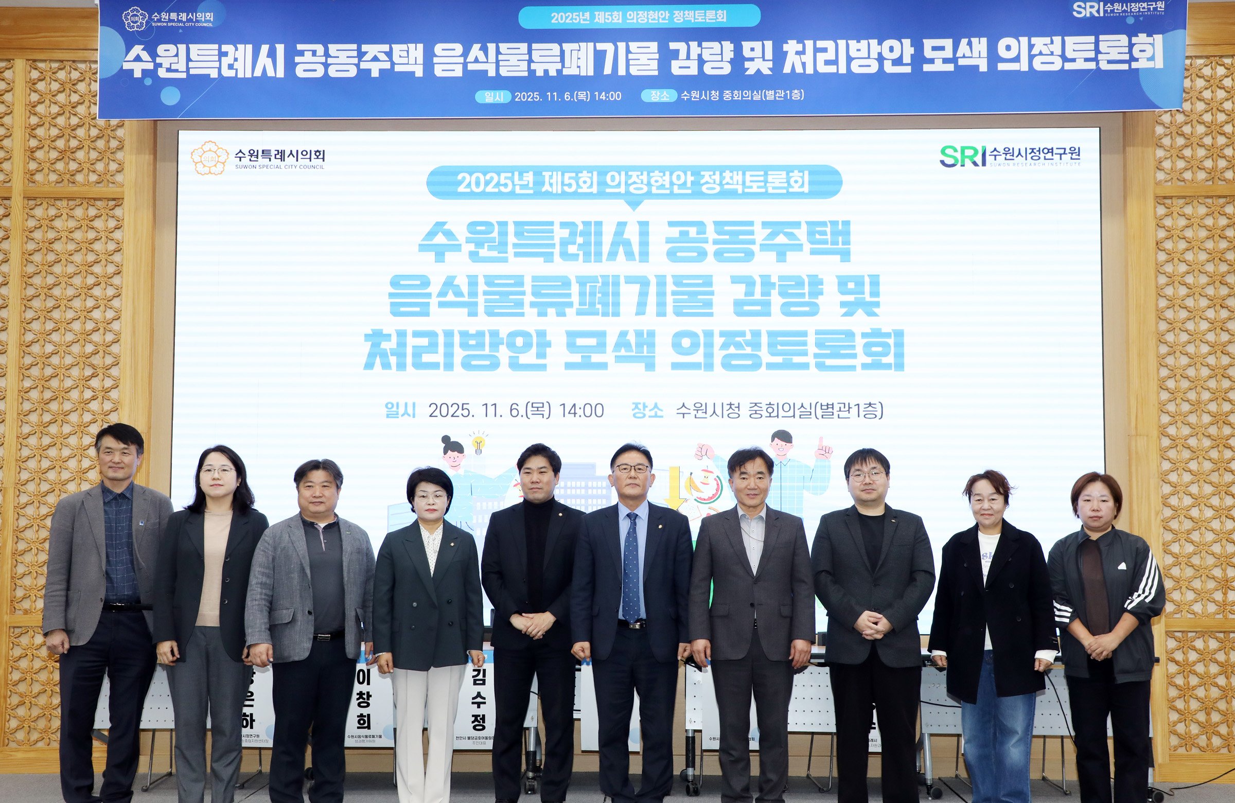 [금요저널] 수원특례시의회 환경안전위원회는 11월 6일 오후 2시, 수원시청 별관 1층 중회의실에서 ‘공동주택 음식물류폐기물 감량 및 처리방안 모색’이라는 주제로 의정토론회를 개최했다.