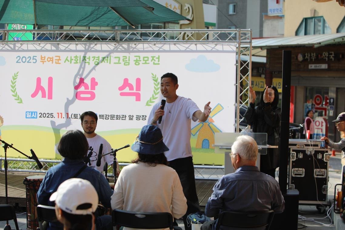 [금요저널] 부여군지역공동체활성화재단은 백강문화관 및 원조먹자골목 일대에서 ‘2025 부여군 사회적경제 한마당’에서 ‘사회적경제 그림 공모전 시상식’을 성황리에 개최했다고 7일 밝혔다.