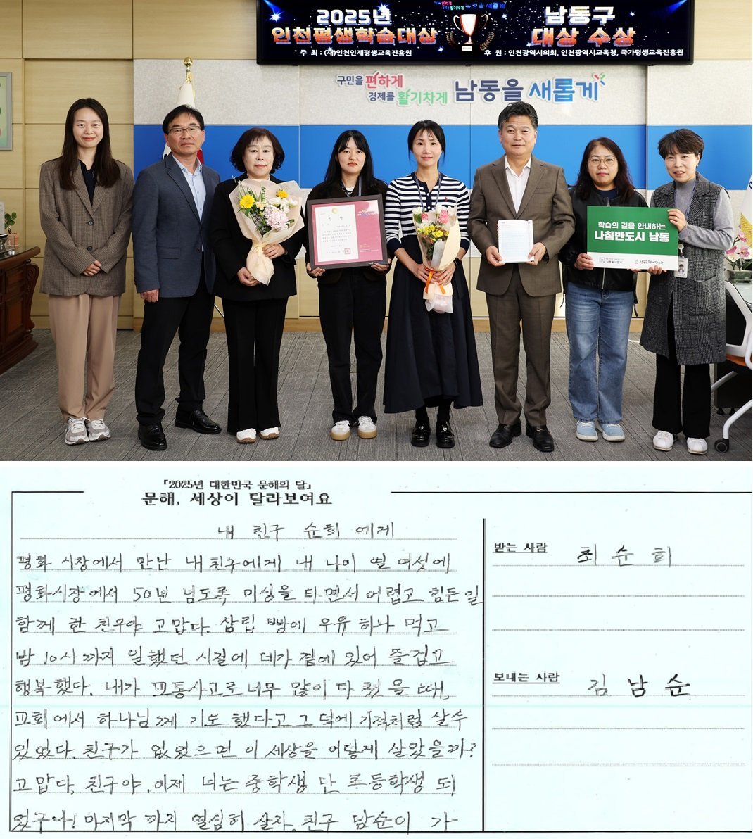 구는 같은 날 열린 전국·인천 성인 문해교육 시화전에서도 남동글벗학교 학습자 7명이 수상하며 인천 대표 평생 학습도시로서의 위상을 다시 한번 확인했다.