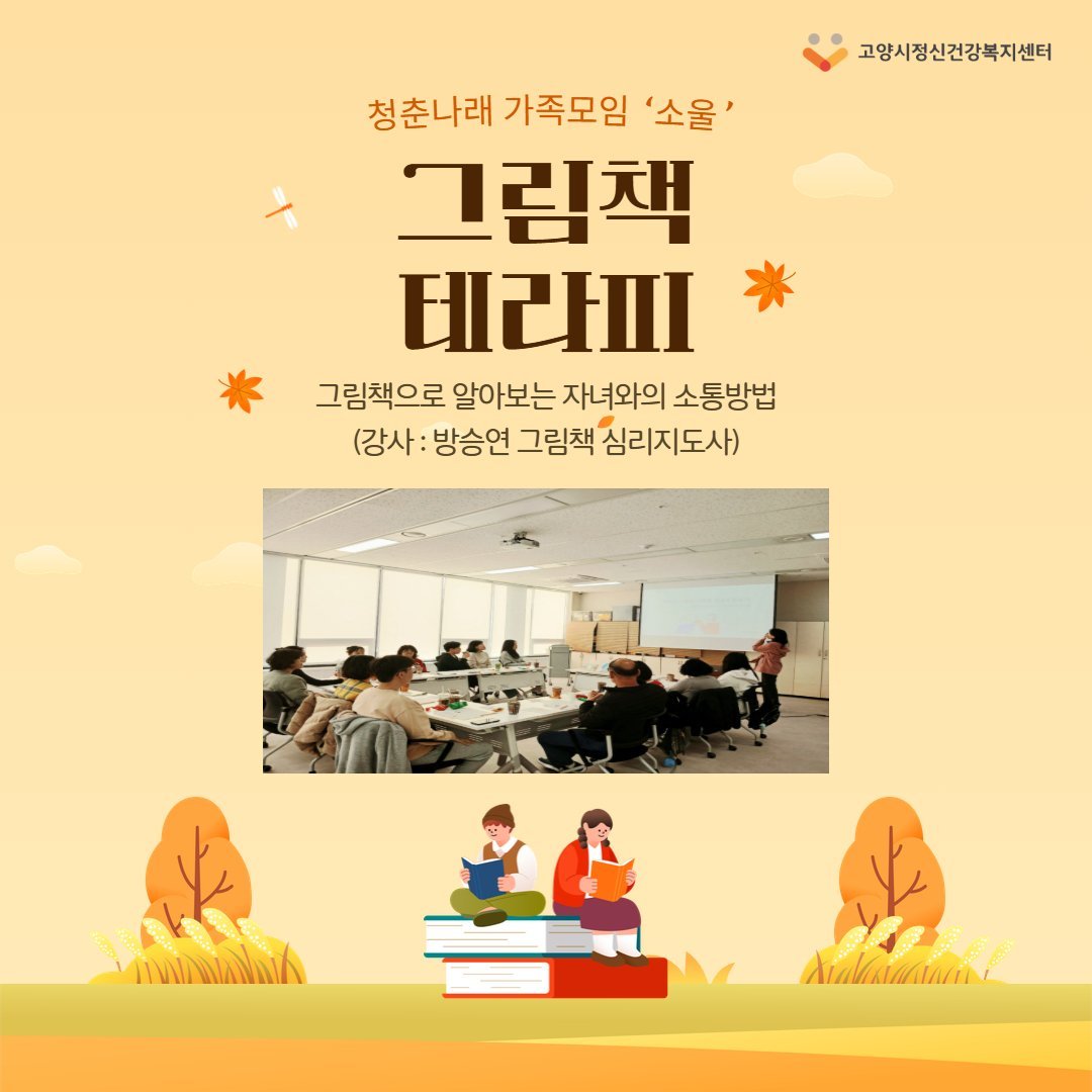 고양시정신건강복지센터 그림책으로 마음을 잇다 그림책 테라피 무료 강연 개최