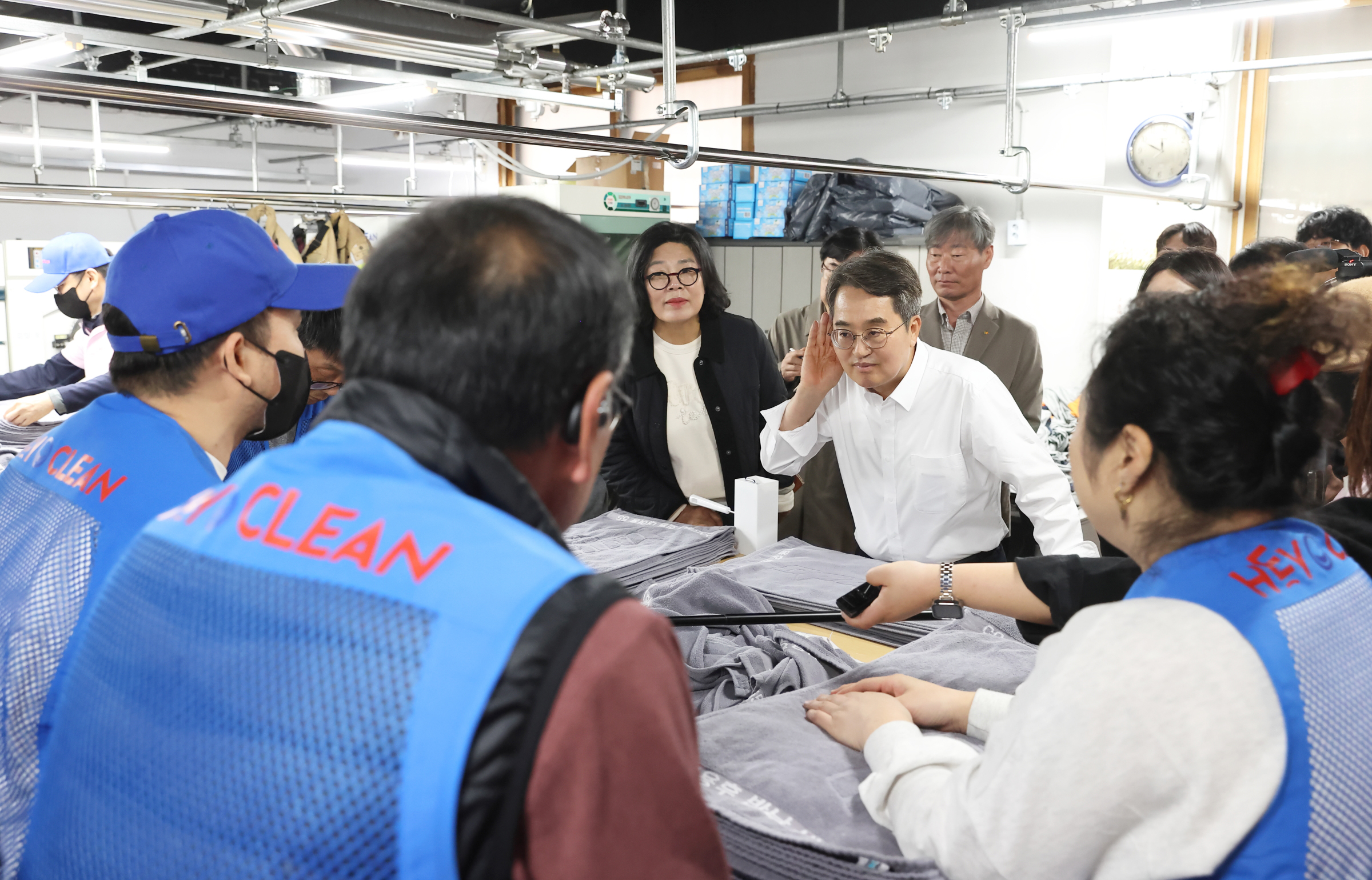 ⓷‘헤이클린’(빨래세탁 사업단)은 일반고객외에 지역 내 저소득층 등에게 수거에서 배송까지 세탁서비스를 제공하고 있습니다. 김동연 지사는 수건 등 세탁물 정리 작업을 함께했습니다.
