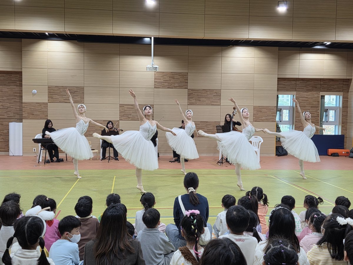 보도자료 한들물빛유치원 찾아가는 피아노 5중주 및 발레 공연 1 (사진제공=아산교육지원청)
