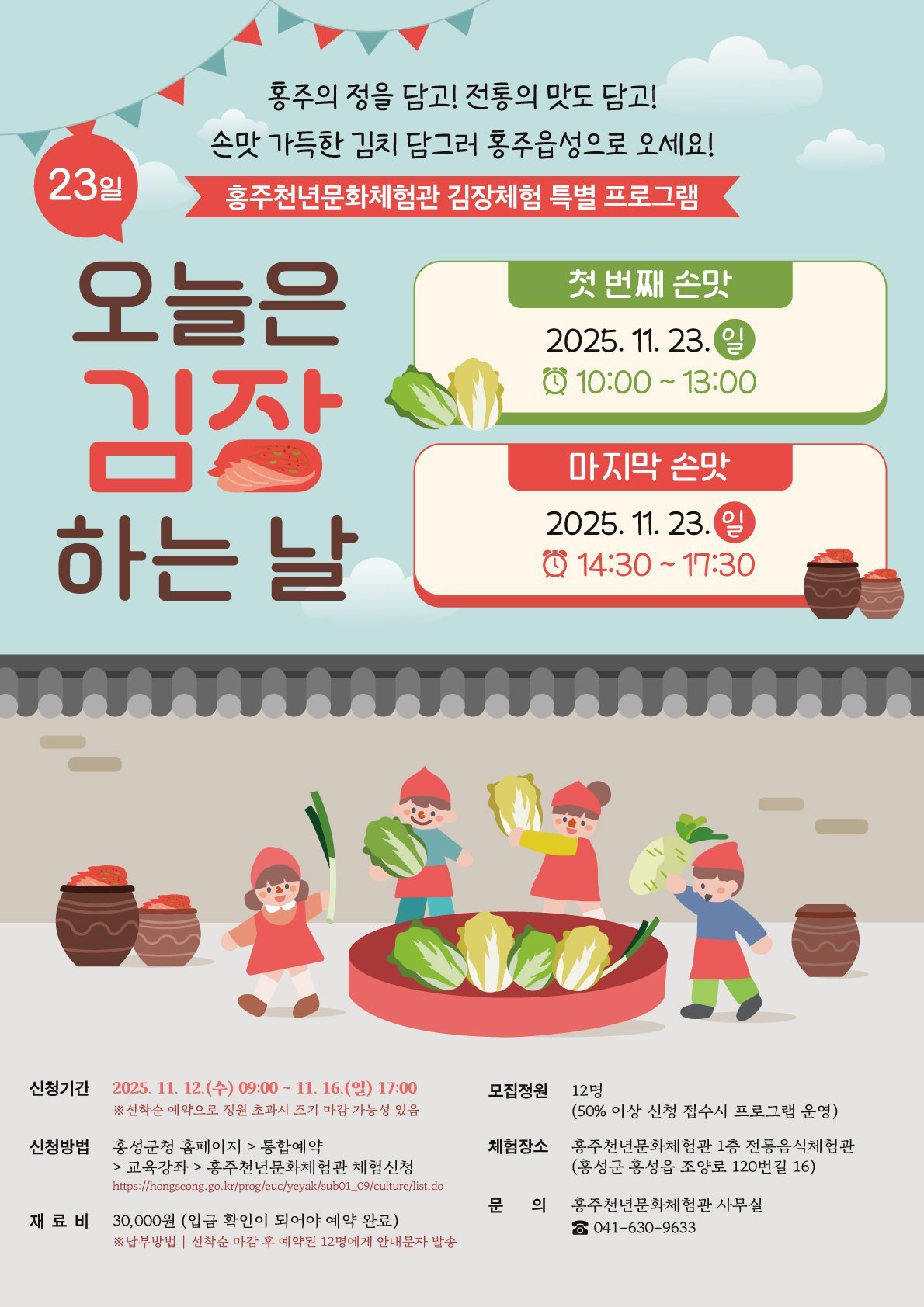 윤상구 문화유산과장은 “김장은 단순한 음식이 아니라 우리 문화와 정서를 담은 중요한 전통이기에 많은 분들이 이번 기회를 통해 홍주 지역의 전통적인 김장 문화를 직접 체험하시길 바란다”고 전했다.