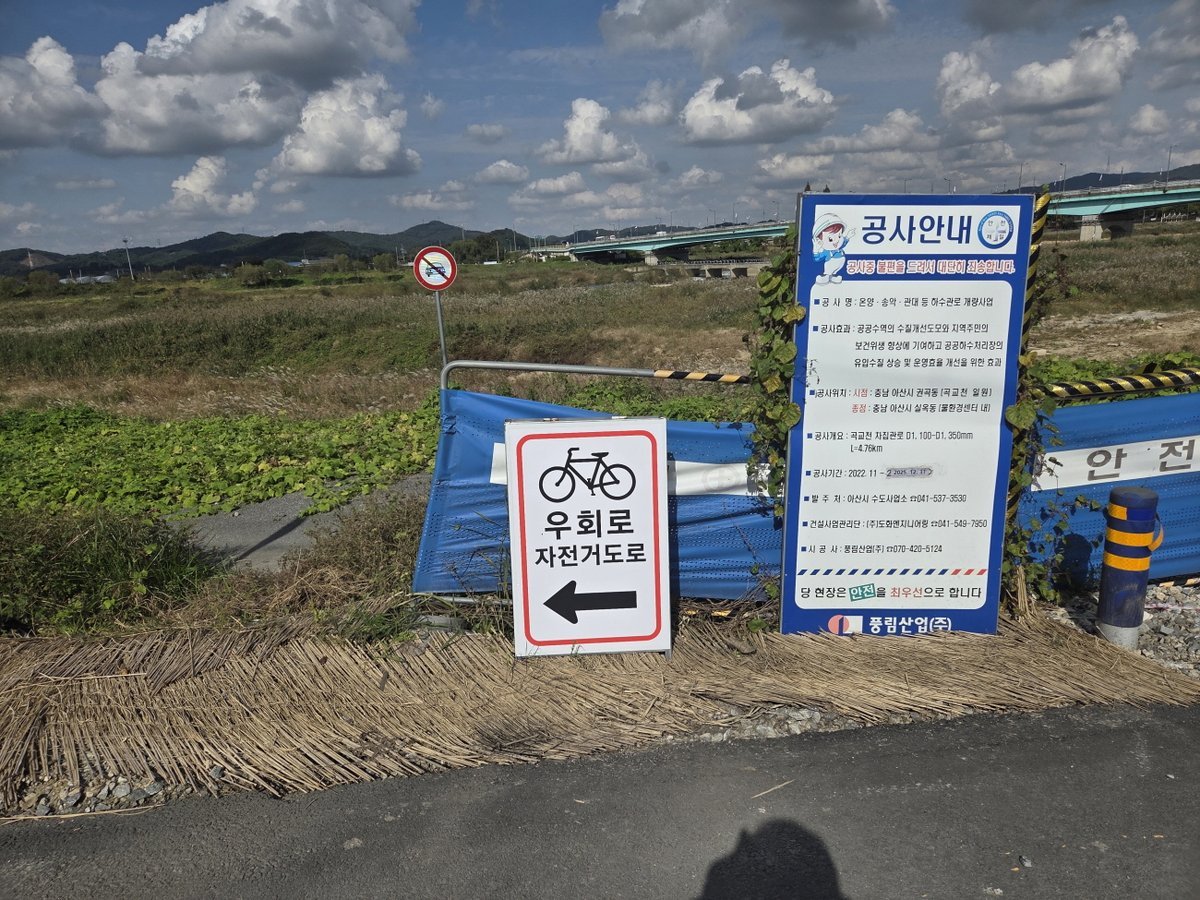 아산시 곡교천 자전거도로 단절 구간 우회도로 안내 표지판 설치 완료