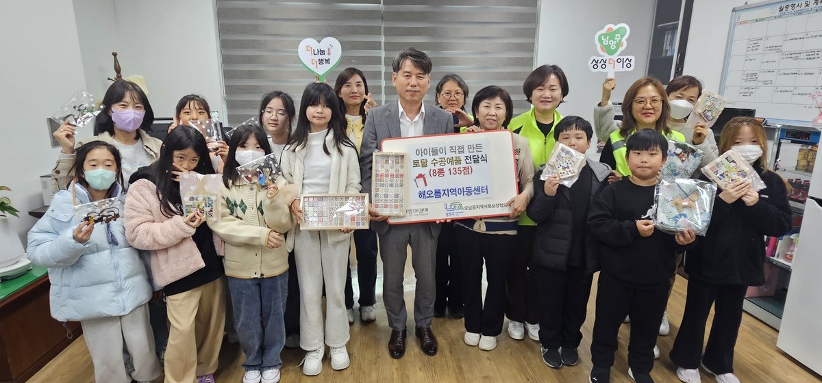 [금요저널] 남양주시는 지난 7일 오남읍사무소에서 해오름지역아동센터 아동들이 손수 제작한 공예품을 지역 내 취약계층에게 전달하는 ‘아동이 만든 토탈공예품 전달식’을 진행했다고 10일 밝혔다.