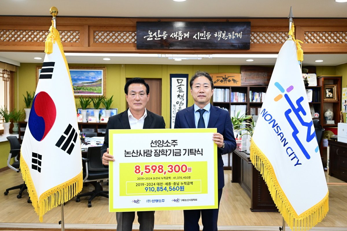 백성현 논산시장은 “선양소주가 지역 인재 육성에 보태주신 힘은 지역사회 발전에 큰 원동력이 되고 있다”며 “선양소주의 진심 어린 나눔과 실천이 논산 청년들에게 든든한 희망이 될 것”이라고 감사를 전했다.