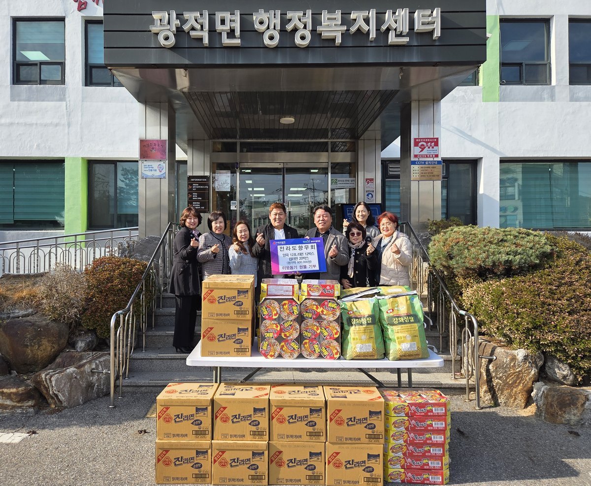 [금요저널] 양주시 광적면 행정복지센터는 지난 11일 전라도향우회에서 지역 내 취약계층의 따뜻한 겨울나기를 돕기 위해 백미 12포, 라면 12박스, 컵라면 20박스 등 총 90만원 상당의 식료품을 기부했다고 밝혔다.