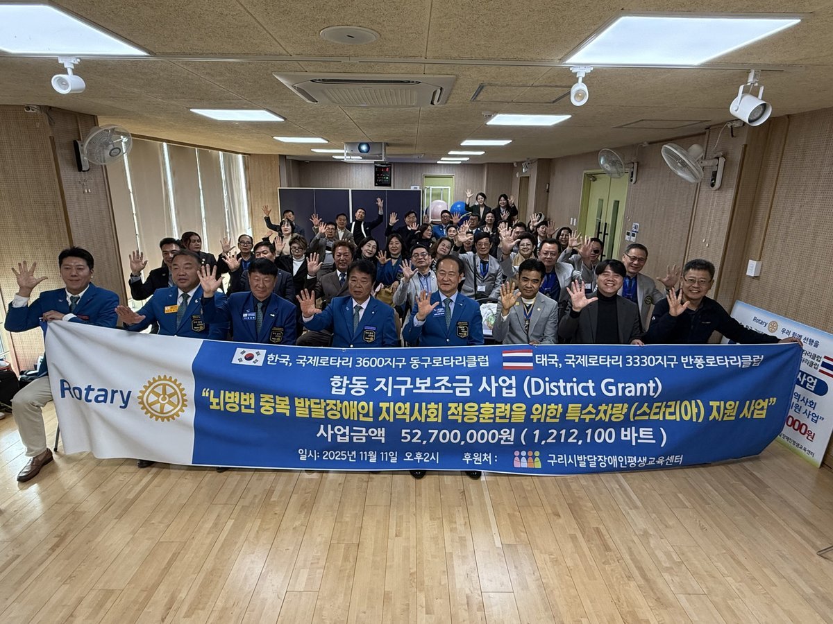 이날 전달식에는 동구로타리클럽 김성환 회장과 회원들, 태국 반퐁로타리클럽 관계자, 구리시발달장애인평생교육센터 정은중 센터장 등이 참석해 기증 차량 앞에서 뜻깊은 봉사의 의미를 되새기는 시간을 가졌다.