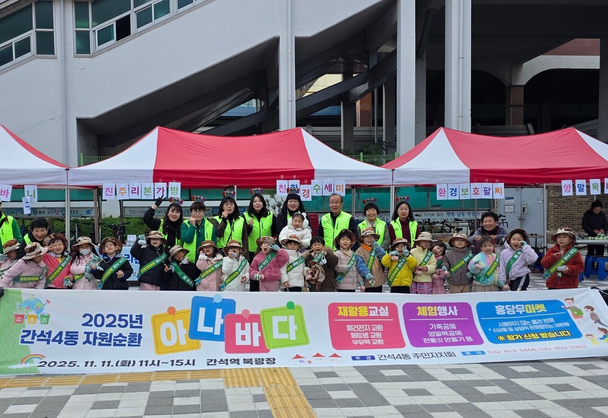 [금요저널] 주민은 중고물품 거래, 유치원생은 재활용 체험으로 자원순환 배워 -인천시 남동구 간석4동 주민자치회는 간석역 북광장에서 2025년 간석4동 자원순환 아나바다 행사를 성황리에 개최했다고 13일 밝혔다.