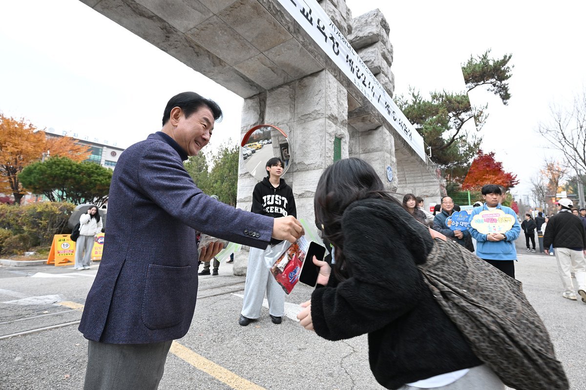김동근 시장은 이날 새벽, 관내 주요 시험장인 송양고등학교와 효자고등학교 등을 차례로 찾아 수험생들을 응원하며 “그동안의 노력과 열정이 결실을 맺는 뜻깊은 하루가 되길 바란다”고 격려했다.