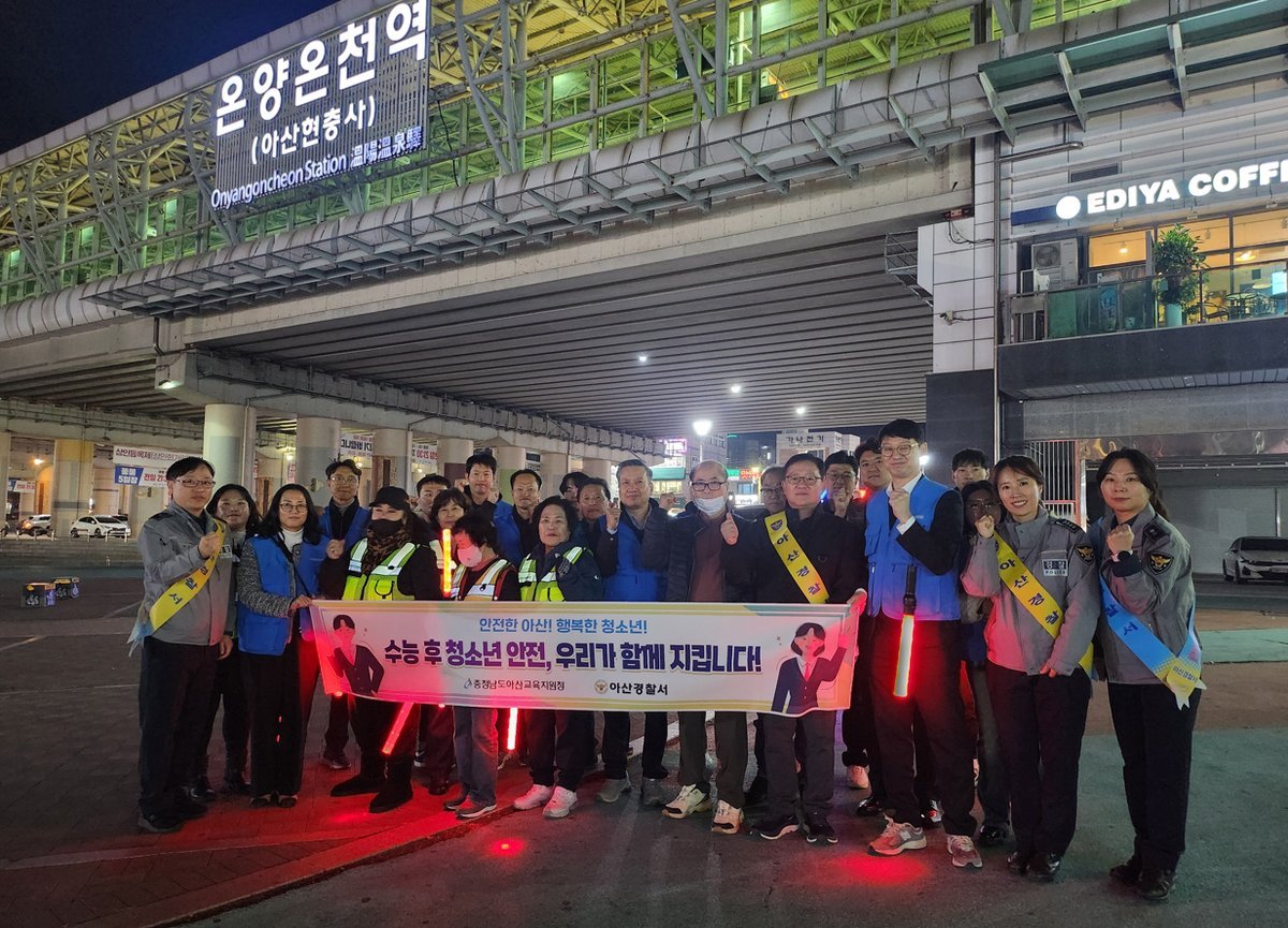 [금요저널] 충청남도아산교육지원청 은 11 월 13 일 저녁 , 수능 이후 해방감에 들뜬 청소년들의 일탈행위를 예방하고 안전한 귀가를 유도하기 위해 지역사회 유관기관과 함께 합동 생활지도 순찰을 실시했다.
