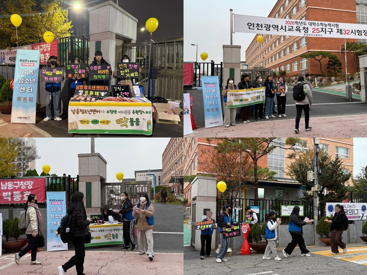 [금요저널] 인천시 남동구 남동청소년센터는 2026학년도 대학수학능력시험일에 문일여자고등학교 수험장 앞에서 수험생들을 위한 현장 응원 캠페인을 진행했다고 17일 밝혔다.