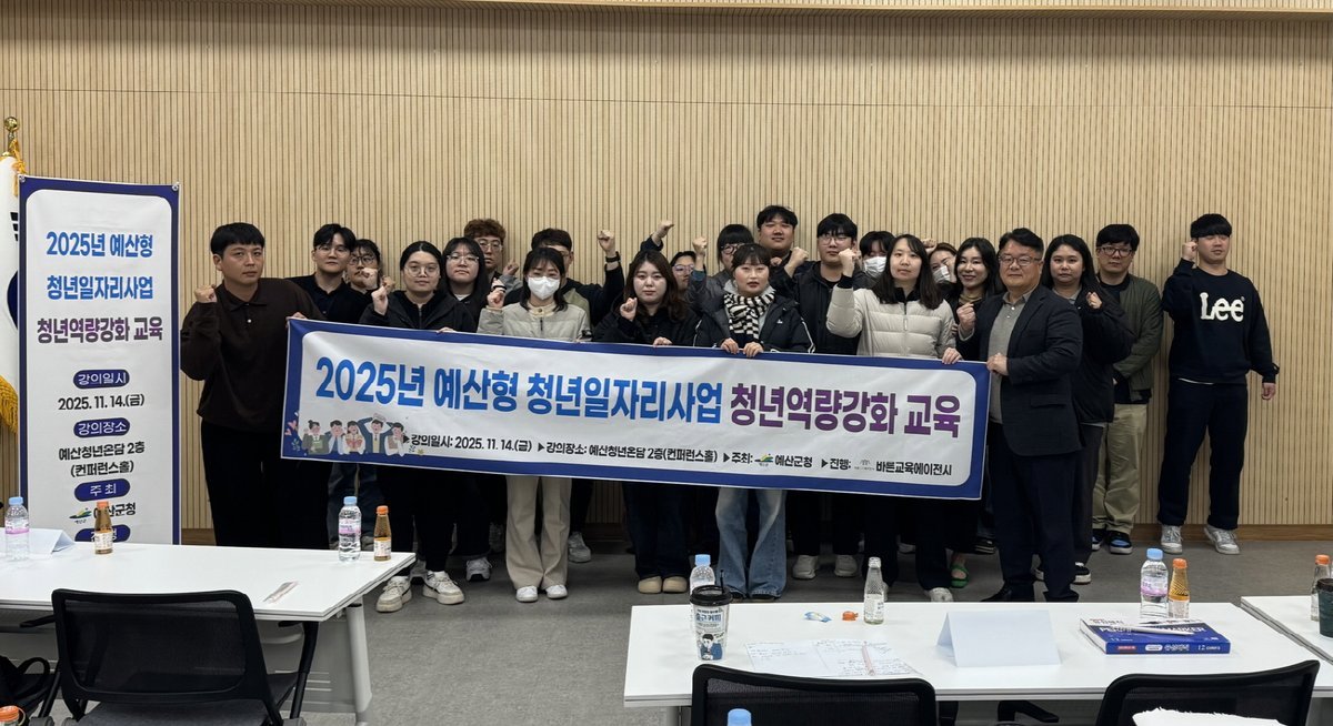 [금요저널] 예산군은 지난 14일 예산청년온담 컨퍼런스홀에서 2025년 예산형 청년일자리사업 참여 근로자를 대상으로 직무역량강화 교육을 실시했다고 밝혔다.