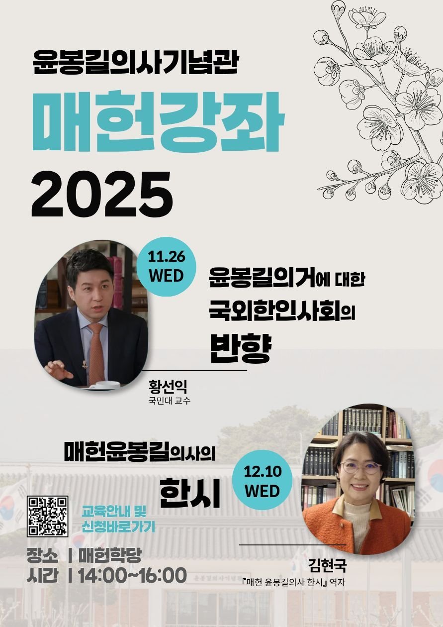 교육관 ‘매헌학당’은 강의실, 체험실, 임산부 휴게실 등 실습 기반 교육 환경을 갖춘 공간으로 조성됐으며 향후 ‘매헌강좌’인문교양 프로그램을 비롯해 전시 연계 교육, 교과 연계 교육 등 다양한 관람객을 위한 프로그램 운영 공간으로 활용될 예정이다.