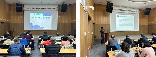올해 3월과 8월 정비사업조합 임원을 대상으로 공정한 하도급 계약 문화 정착을 위한 ‘2025년 정비사업 아카데미 조합 임원 역량강화 교육과정’에 ‘건설공사 하도급 이해 과정’을 개설해 성황리에 교육을 마쳤다.