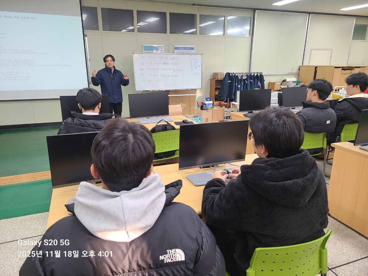 "이론과 기술, 남보다 앞서 배웠다"후배들에게 꿈과 취업 노하우 전달 18일 ‘컴퓨터응용기계과 졸업생 김상욱 강사 초청, 취업 성공 스토리 공유 '기술을 앞세우는 시대, 특성화고 교육의 강점 재확인 모빌리티 분야 구체적인 진로 설정 및 목표 달성 동기 부여
