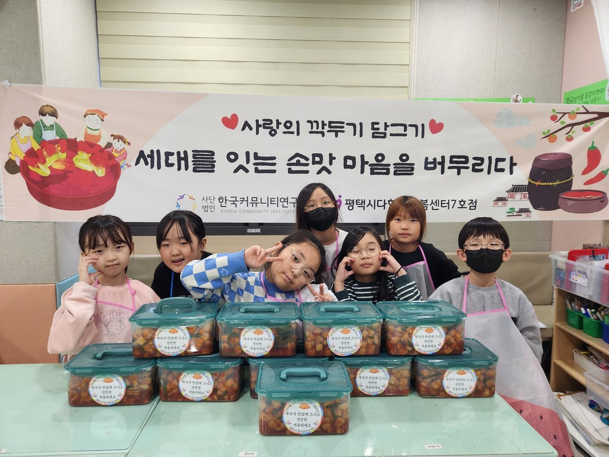 이번 나눔은 평택시 다함께돌봄센터 7호점이 진행한 ‘아동 요리 체험 프로그램’의 하나로 아동들이 직접 무를 손질하고 양념을 버무려 깍두기를 만드는 활동을 통해 요리 경험을 쌓는 동시에 지역사회 나눔의 가치를 배우는 교육적 의미를 담고 있다.