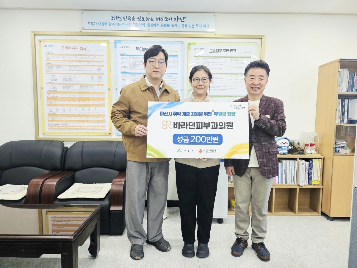 바라던피부과의원 아산시 취약계층 위해 성금 200만 원 후원 아산시 제공