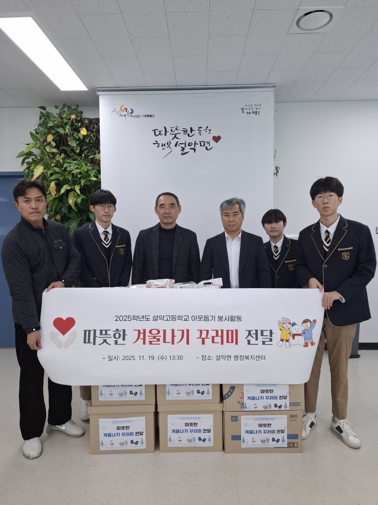 이동철 설악면장은 “학생들이 직접 준비한 겨울 꾸러미는 취약계층에게 큰 힘과 위로가 된다”며 “해마다 이어지는 설악고의 진심 어린 나눔에 감사드리고 기탁된 꾸러미는 필요한 분들께 소중하게 전달하겠다”고 밝혔다.
