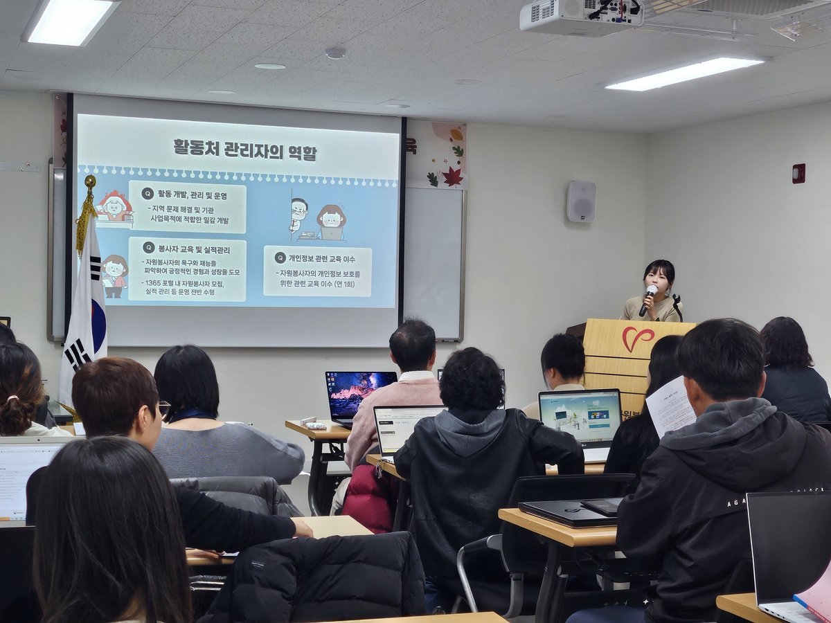 이번 교육은 상반기에 이어 하반기에도 자원봉사 실적 관리의 전문성과 일관성을 강화하기 위해 마련된 자리로 다양한 활동처에서 실무를 맡고 있는 담당자들이 다시 한자리에 모여 현장의 요구와 변화에 맞는 실질적 역량을 높이는 데 중점을 두었다.
