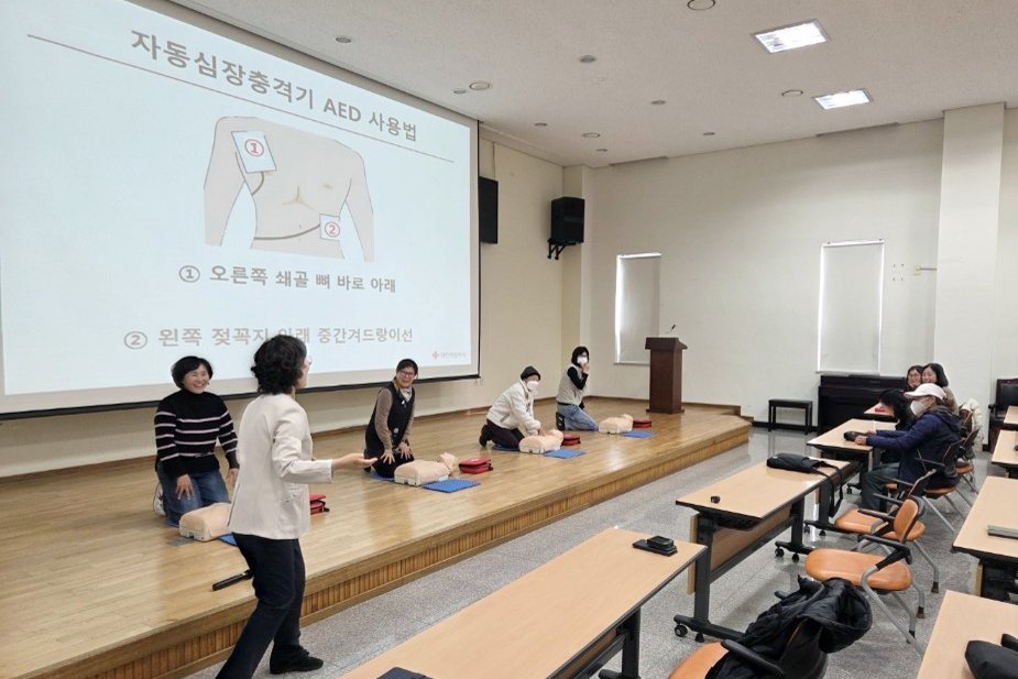 특히 단순한 이론 강의가 아닌 마네킹을 활용한 흉부 압박 실습, AED 모형기 작동 훈련, 실제 상황을 가정한 참여형 실습 위주로 교육이 구성되어 주민들의 적극적인 호응을 이끌었으며 강사진은 잘못된 응급처치 사례를 교정하는 등 주민들이 실질적 기술을 익힐 수 있도록 교육 효과를 극대화했다.