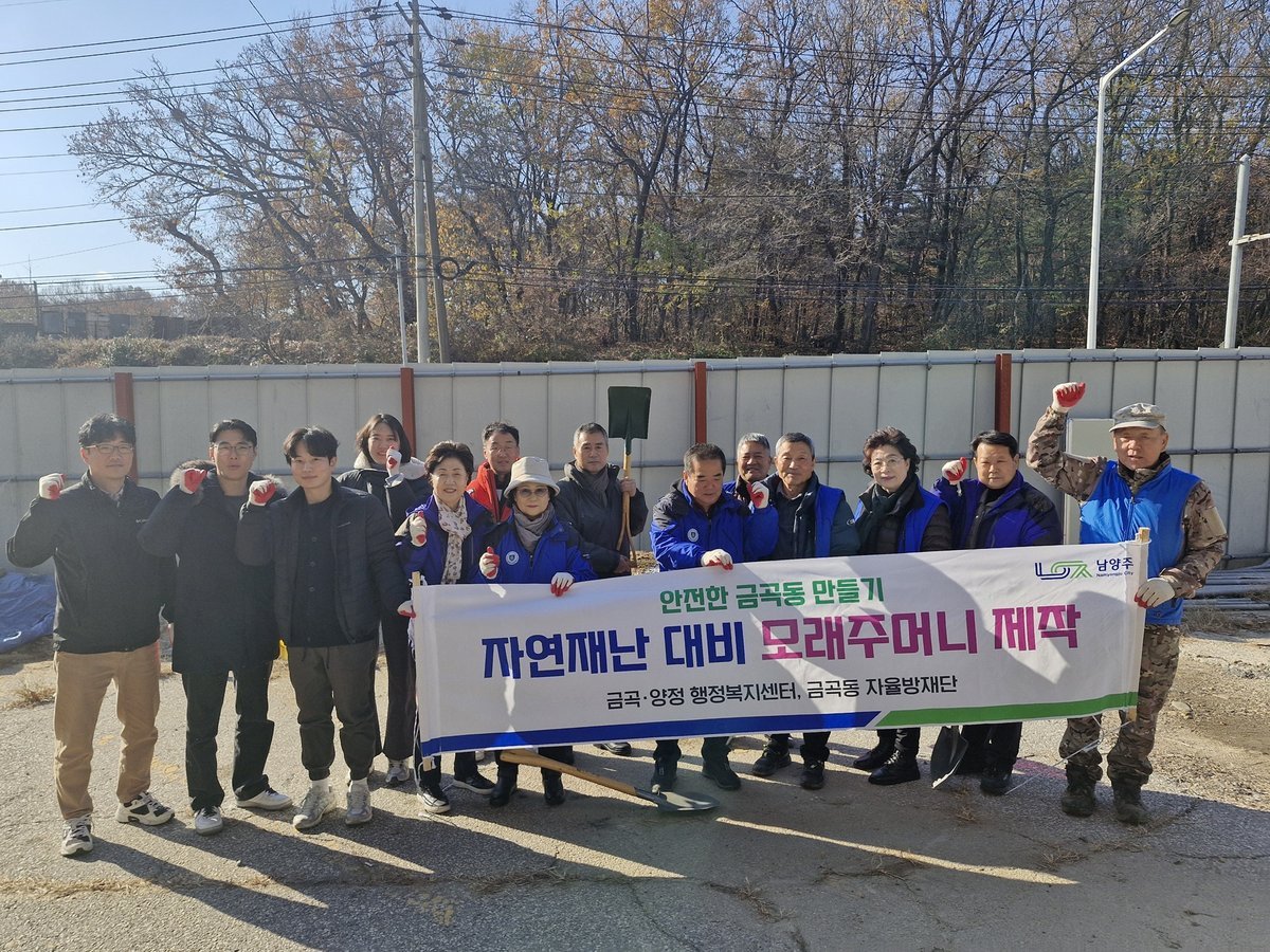 [금요저널] 남양주시는 19일 금곡양정행정복지센터가 금곡동 자율방재단과 함께 겨울철 재난 대비를 위한 제설용 모래주머니 제작 작업을 추진했다고 밝혔다.