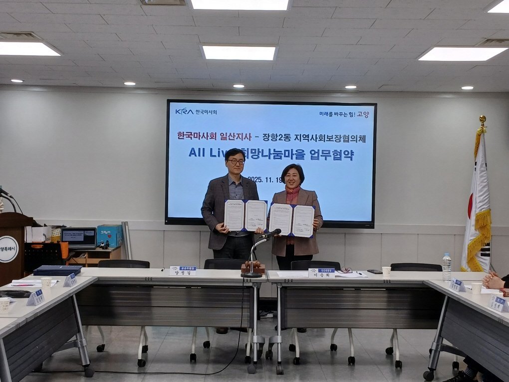 [금요저널] 고양특례시 일산동구 장항2동 지역사회보장협의체는 지난 19일 한국마사회 일산지사와 ‘All Live 희망 나눔 마을’업무협약을 체결했다고 밝혔다.