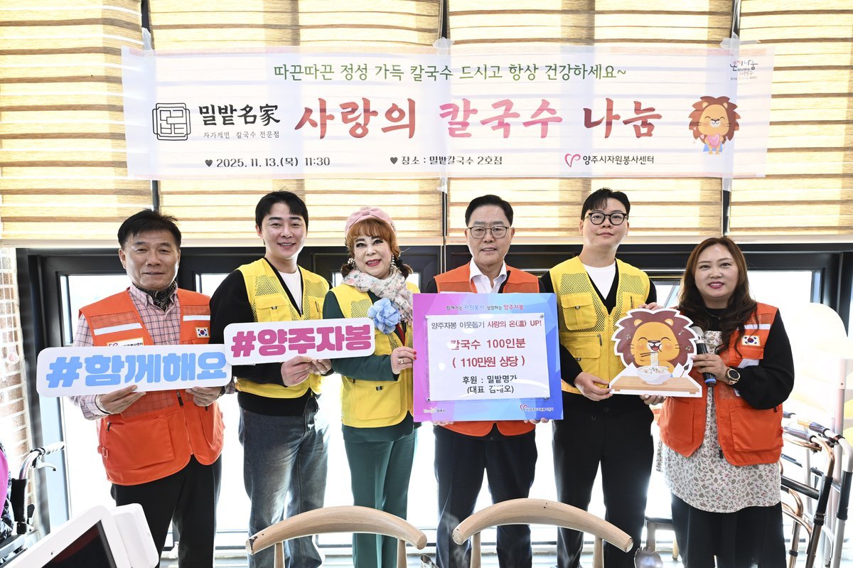 [금요저널] 양주시자원봉사센터가 13일 밀밭명가 2호점에서 지역 어르신과 장애인을 초청해 ‘사랑의 칼국수 나눔’행사를 개최했다고 밝혔다.